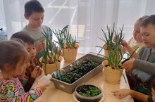 Ребята решили провести эксперимент-вырастить овощи на подоконнике. (воспитатель- Муртазина Л.Р.) Они выбрали лук и огурцы, потому что,эти растения не требуют сложного ухода и могут хорошо расти в комнатных условиях.Каждый день ребята ухаживали за своими растениями: поливали их, рыхлили почву и наблюдали за ростом.Вот какая красота у них получилась. Уже и первые огурцы пошли!!!
