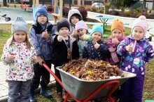 "Не надо бороться за чистоту, надо подметать!" с таким девизом в один из прекрасных осенних дней воспитатели с детьми устроили уборку листвы на своём участке.