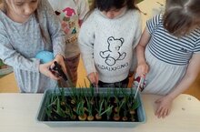 Посадка лука-это и эксперимент, и опыт, и первые зелёные витамины. А сам процесс наблюдение за ростом растения способствует развитию любознательности и наблюдательности. Дети старшой группы вместе с воспитательницей Муртазиной Л. Р. посадили лук и через неделю уже увидели результат.