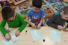 Поэтому мы с ребятами решили сделать снеговиков из бумаги: Вырезали кружочки для ног, туловища и головы, треугольный нос - морковку и ведёрко - головной убор снеговичка.Аккуратно приклеили детали и дорисовали недостающие детали: глаза, рот, руки и пуговички.