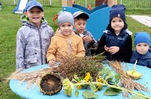 Из зерен вырастают колоски. За их ростом наблюдает агроном, человек, знающий как правильно выращивать хлеб.Вместе с детьми весной посадили зерна, летом наблюдали за ними, поливали, а осенью пришло время собирать колоски пшеницы, ржи. -
