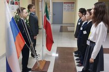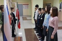 Наша учебная неделя началась с поднятия флагов под гимны Российской Федерации и Республики Татарстан.
