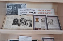 В библиотеке представлена открытая полка "Первопроходцы космоса. Космосның беренчеләре", посвященная Дню космонавтики.