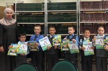 В библиотеке первоклассникам были вручены подарки. Книги "Ылыслы әкият. Хвойная сказка" и "Приключения Барсика"
