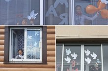 В честь надевгающигося Дня Победы, учащиеся школы украсили окна квартир и домов в рамке акции Окна-Побед.