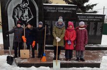Ученики 5 класса на кружке "Юный волонтер" чистили снег на территории памятника.
