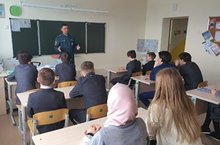 Шакирьянов А.Р., представитель МЧС, встретился с учащимися школы и напомнил о правилах поведения при пожаре.