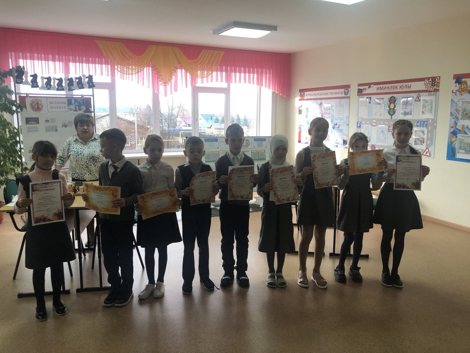 Опубликовано: 22.10.2021Сегодня, 22 октября, прошла линейка для 1-4 классов.Библиотекарь Назмутдинова Адиля Фаритовна наградила обучающихся дипломом "Лучший читатель школьной библиотеки" и подарила обложки. Заместитель директора по учебной части Шафикова Миляуша Марселевна наградила обучающихся дипломом за участие в открытом Всероссийском Дне бега "Кросс нации-2021"и сертификатом за активное участие в муниципальном конкурсе "Дары осени".