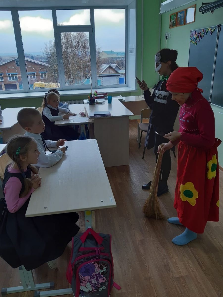 Опубликовано: 25.10.2021Окунуться в мир детства и сказки приятно не только детям, но и взрослым. Сегодня первоклассники, например, полностью поверили, что к ним из леса пришла Баба-Яга со своим помощником Котом, которого она называет Старый пень. Она не только устраивала им разлекательные игры, но заставила и подумать о своей мечте, узнала, какие сказки они услышали и смотрели про нее, угостила их. Обучающиеся поблагодарили ее и пригласили на новогоднюю елку.