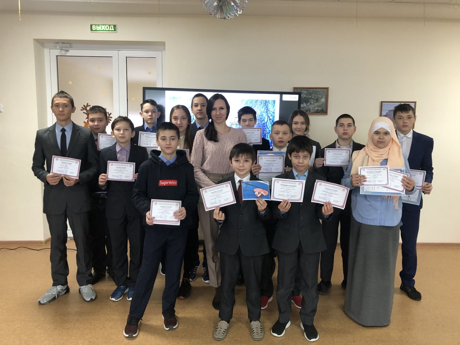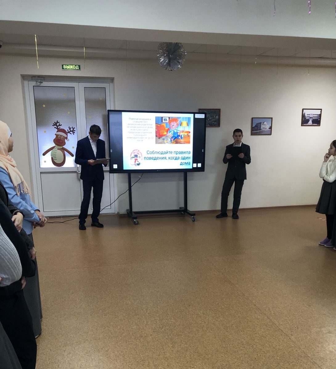 Опубликовано: 24.12.2021Сегодня на линейке ученики 9 класса провели инструктаж о технике безопасности по правилам поведения на зимних каникулах. Также на итоговой линейке обучающихся наградили сертификатом участника школьного этапа олимпиады по математике, родному языку, обществознанию; сертификатом за участие в муниципальном конкурсе "Читающая мама-читающая страна"; сертификатом за участие в конкурсе сочинений "Формула добра", посвященный декаде инвалидов; сертификатом за участие в акции "Накормите зимой птиц"; сертификатом за участие в турнире по настольному теннису, посвященный месячнику инвалида. Обучающимся вручили дипломы за участие в муниципальном этапе межрегионального конкурса проектов "Истории славные страницы.Школы героев" номинация "История Родного края" и за участие в акции "Ёлочка- зеленая иголочка"; грамоту за участие в турнире по настольному теннису, посвященный месячнику инвалидов.; свидетельство за участие в муниципальной акции "Помоги первокласснику безопасно прийти в школу".