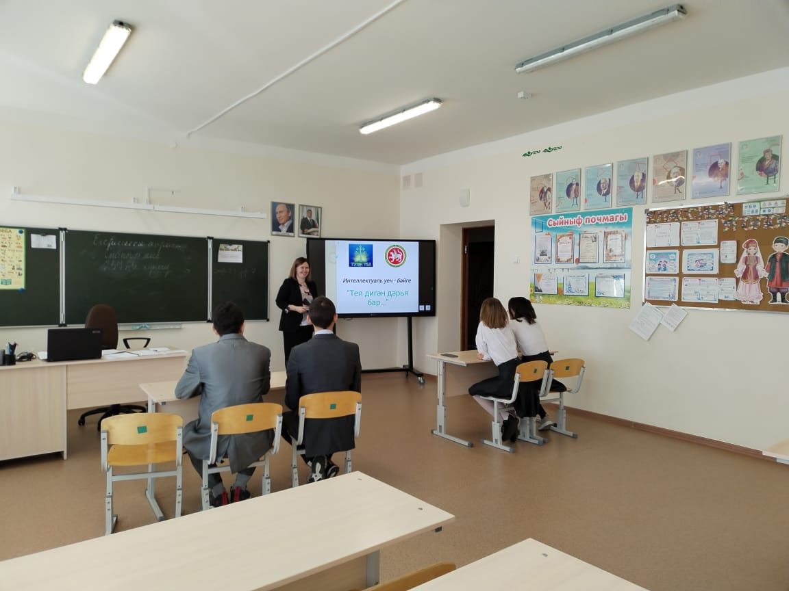 Опубликовано: 22.04.2022Буген 22-нче апрель көнне татар теле укытучысы Асхадуллина Ляйсан Ринатовна туган тел ункөнлеге кысаларында 8 нче сыйныф укучылары белән "Тел дигән дәрья бар" исемле интеллектуальуен-бәйге үткәрелде.