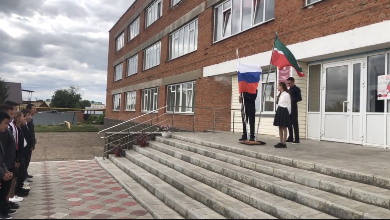 Первая учебная неделя закончилась со спуска флага Российской Федерации и Республики Татарстан под гимн России и Татарстана .