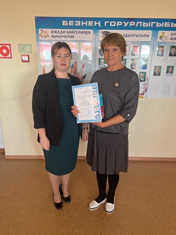 Опубликовано: 22.10.2022Сегодня в нашей школе прошла линейка для 1-9 классов, где наградили учителя русского языка Гизатуллину Гузалию Анасовну нагрудным знаком за верность профессии. Также наградили команду ЮИД почетной грамотой на победу в номинации «Тематическая направленность» «Давай дружить, дорога!», и руководителя кружка ЮИД Гизатуллину А.А. Занявшую 1 место в номинации «Лучший руководитель».