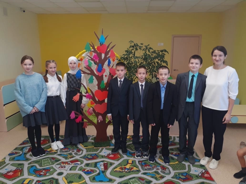 Опубликовано: 28.10.2022Сегодня в рамках "Недели добра" наши ученики 5 класса, классный руководитель Хасаншина Л.Г. совместно с воспитанниками детского сада "Салават күпере" провели "Урок добра". На занятии учащиеся вместе с детьми рисовали ладошки, сердечки и сделали Дерево добра. Проведённое мероприятие призывало детей быть отзывчивыми и внимательными друг к другу. Хочется сказать следующее: пусть неделя добрых дел станет не просто акцией, а принципом жизни: помогать людям, дарить тепло, радость и улыбку ближним.