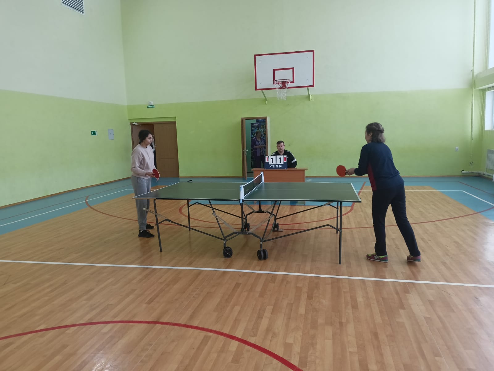 Соревнования по теннису среди учителей.