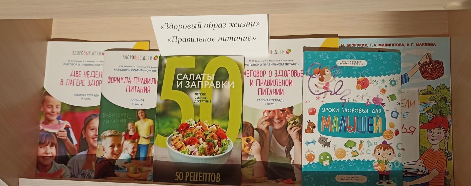 В библиотеке представлена открытая полка "Здоровый образ жизни. Правильное питание".