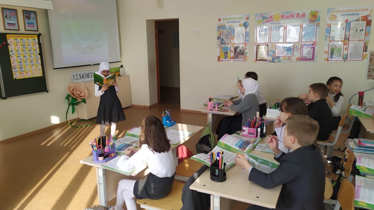 Бүген башлангыч сыйныф укытучысы М.М. Шафикова 2 нче һәм 6 нчы сыйныф укучылары өчен сыйныф сәгате үткәрде. Дәрес туган тел декадасына багышланган иде. Укучылар викторина сорауларына җавап бирделәр, татар әйтемнәре һәм мәкальләрендә төшеп калган сүзләрне таптылар.