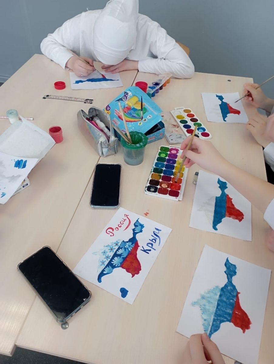 Советник директора по воспитанию Абунагимова Л. С. при содействии педагога дополнительного образования Севастопольского ДЮТ Носоновой Е. В. на уроке технологии провела мастер-класс "Севастопольская роспись". Вместе с Лилией Салиховной ученицы 5 и 6 классов сделали открытки с изображением Крымского полуострова в технике "Севастопольская роспись". По окончанию мастер-класса дети с удовольствием обменялись открытками. Девочки получили уйму положительных эмоций от создания открыток новой, не знакомой им до этого, техникой.