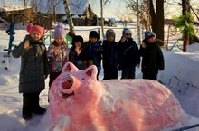 Мы из снега свинку строим