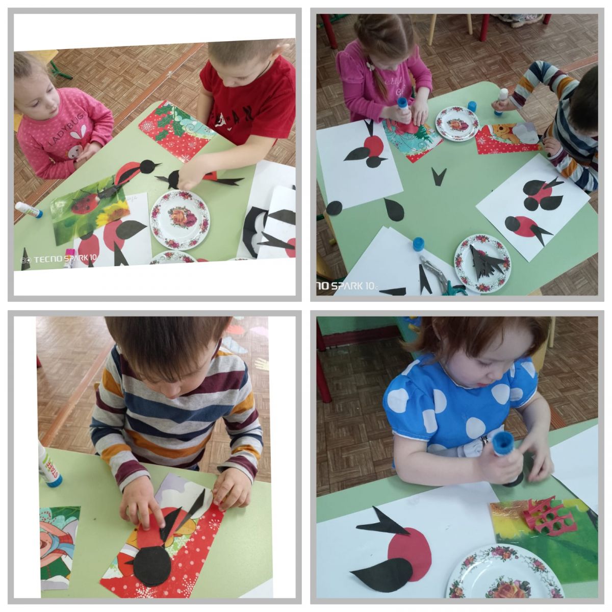 9 января в России отмечается праздник "День Снегиря". Дети средней группы приготовили аппликации "Снегирь".