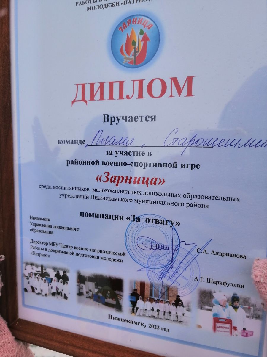 Опубликовано: 22.02.2023В преддверии Дня Защитника Отечества на территории детского сада "Аленушка" с. Сухарево прошла военно-спортивная игра «Зарница». В мероприятии приняли участие воспитанники из 10-ти сельских детских садов: Старошешминск, Шингальчи, Болгар, Кармалы, Борок, Трудовой, Верхние Челны, Каенлы, Афанасово, Сухарево. Перед началом игры дошколята с педагогами и родителями возложили цветы к подножию Монумента героям-землякам,а затем с боевым настроем состязались в строевой подготовке, метании гранаты, оказании медицинской помощи, разминировании поля, установки связи. Во время состязаний ребята оказывали посильную помощь и поддержку друг другу, демонстрировали настоящий командный дух. Несомненно, патриотизм нужно воспитывать с детства, а игра «Зарница» в этом помогает, ведь с помощью игровых заданий она развивает быстроту, ловкость и смелость. И, конечно же, учит ребят поддержке друг друга, взаимодействию в команде, сопереживанию и взаимовыручке. И ка полагается, тне обошлось без военно-полевой кухни. Дети с удовольствием ели солдатскую кашу.Все присутствующие получили заряд юодрости и массу положительных эмоций. Команда нашего детского сада «Пламя» была награждена дипломом в номинации "За отвагу", Поздравляем! Спасибо за организацию МБДОУ "Детский сад "Аленушка" с. Сухарево".