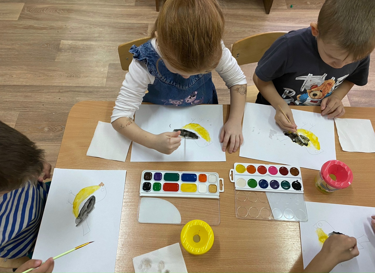 рисовали и мастерили синичек из бумаги.