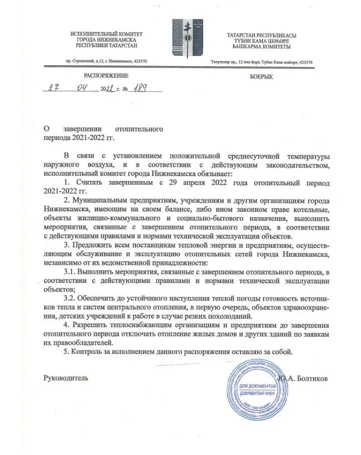О завершении отопительного сезона 2021-2022 28.04.2022