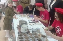 Наши ученики отряда Юнармии и координатор юнармейского отряда Сидорова И. С. были приглашены для организации мастер-классов по изготовлению окопных свечей и брелоков-амулетов.