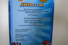 Организационный комитет IX муниципального методического конкурса "Школа дорожных наук" наградил Кузнецову Н.П. учителя начальных классов за 1 место в номинации " Сценарий мероприятий по ПДД"