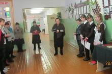 Сегодня члены школьного краеведческого музея с учителем истории Болтиковой Т.И. выступили перед учащимися школы художественно- литературной композицией "Помнить всех поимённо", где рассказывали о земляках - героях Советского Союза и кавалерах ордена Славы .Татьяна Ивановна показала книгу,подаренную самим Гайнуллиным Р.Н., когда он был гостем нашей школы во время проведения месячника гражанско-патриатической работы. Была организована фотовыставка книг о героях-земляках.