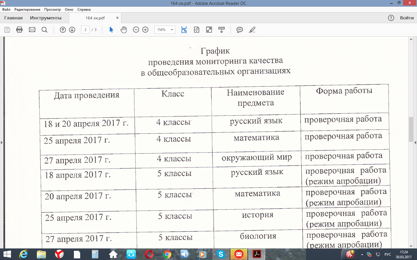 График проведения мониторинга качества в общеобразовательных организациях. 30.03.2017