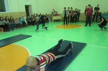 Сегодня в школе прошел военно-спортивный конкурс «А ну-ка, парни!». Мальчики соревновались в 10 видах спорта, но больше всего ребят привлекает разборка, сборка автомата. Знают, что скоро им придется его на службе применять. Какой же солдат без автомата! С преимуществом на одно очко победила команда «Спецназ». После конкурса мальчиков поздравляли девочки и пригласили на праздничное чаепитие