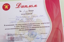 Дипломом за III место наградили Гиниатуллина Ильназа, ученика 3 класса. В номинации "Художественно-изобразительное творчество" I этапа Всероссийского конкурса детско-юношеского творчества по пожарной безопасности "Неопалимая Купина"