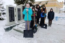 Под руководством воспитателей Халиуллиной Р. А. и Гимадиевой Р. К. ребята с большой ответственностью и усердием очистили от снега территорию у обелиска землякам, погибшим в Великой Отечественной войне.