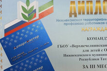Нижнекамская территориальная организация профсоюза работников образования награждает спортивную команду школы Дипломом за III место в XIX Спартакиаде работников образования НМР РТ и подарочными картами "Спортмастер".