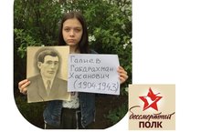 Галиева Ангелина, ученица 8 класса. Прадед - Галиев Габдрахман Хасанович (1904-1943).