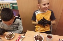Сегодня у нас снова в гостях ребята из Нижнекамского центра студенческих трудовых отрядов и группа автолюбителей МЕСТНЫЕ. Они устроили праздник для детей, точнее создали волшебную атмосферу. Ребята из парикмахерской «Барбершоп» всем мальчишкам и девчонкам сделали практичные и устойчивые прически. А спортсменка Софья поделилась своими успехами в спорте, «секретами» здорового образа жизни, рассказала о своих спортивных достижениях, провела мастер-класс, показав приемы каратэ. Ребята с удовольствием принимали участие в мастер-классе «Шоколадный праздник» и приготовили авторские конфеты, а также полакомились вкуснейшими фруктовыми «шашлычками» в шоколаде. И это еще не все, ребята и в этот раз приехали не с пустыми руками. Они привезли детям канцтовары для творчества. Незабываемые впечатления останутся у детей от этого замечательного праздника. В восторге остались не только дети, но и взрослые. Ребята спасибо вам огромное за позитив вашей работы! Удачи и процветания вам!