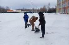 Учащиеся 8-9 классов под руководством учителя технологии Галимова И. Г. продемонстрировали свою доброту и ответственность, убирая снег возле нашей школы.