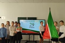 Татарстан Республикасы флагы көнендә 8-9 класс укучылары сыйныфтан тыш уку дәресендә сыйныфташларына үз республикаларының дәүләт символлары, флагның әһәмияте, төсләре турында сөйләделәр, Татарстан Республикасы мәдәнияте һәм тарихы турында белемнәрен күрсәттеләр. Педагог Мәхмүтова С. И.