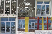 В преддверии Нового года окна школы-интерната украсили рисунки, белоснежные снежинки, сюжетные картинки, трафареты в виде сказочных персонажей, зимних пейзажей и прочие поделки.