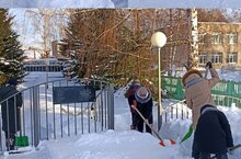 Юнармейцы нашей школы очистили территорию памятника от снега.