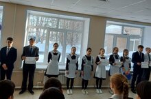 Продолжается месячник военно-патриотического воспитания. Сегодня прошел конкурс строевой песни с участием 1-9 классов.