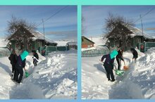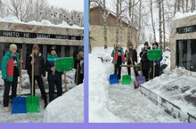 Волонтеры нашей школы сегодня занимались очисткой дворов от снега. Оказали помощь нуждающимся.