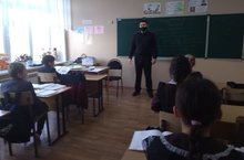 Сегодня в рамках декады безопасности дорожного движения перед зимними каникулами перед учениками 5-8 классов выступил сотрудник ГИБДД Гареев И.Л.