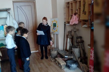 В пятницу учащиеся 1 класса вместе с активом краеведческого кружка посетили школьный музей, где познакомились с предметами старинного быта.