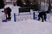 Уборка снега около памятника 10.02.2018