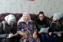 "Сугыш чоры балалары янәшәбездә" акциясе дәвам итә. Бүген 7 сыйныф кызлары Яруллина Әкълимә Гани кызының хәлен белделәр. Әкълимә апа укучы кызларга сугыш вакытында ничек яшәүләре, ниләр кичерүләрен җентекләп сөйләде. Аның сөйләгәннәрен кызлар язып алдылар.
