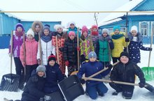 Бүген "Доброе сердце - добрые дела" отряды волонтерлары һәм юнармиячеләр дәресләрдән соң өйләренә кайтып ашап килгәннән соң авылыбызның мәдәният йорты янына сәгать 15.00 гә җыелырга сөйләштеләр. Максатлары: ялгыз яшәүче әби-бабайларның, тыл ветераннарының һәм сугыш чоры балаларының капка төпләрен кардан чистарту. Сөйләшенгән вакытка көрәкләр күтәреп 20 укучы җыелды. 2 сәгать эчендә алар 10 капка төбен чистартырга өлгерделәр. Юкка гына "Бердәмлектә - көч" димәгәннәр. Кайтканда һәр баланың кәефләре күтәренке, йөзләре шат иде. Әби-бабайлар аларның артларыннан рәхмәтләрен укып, изге теләкләрен теләп калдылар.