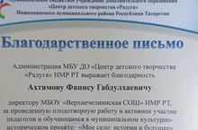 Ул мәктәп директоры Ахтямов Фәнис Габделхәй улына МБУ ДО "ЦДТ "Радуга" ның Рәхмәт хатын тапшырды.
