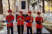 Юнармияче укучылар һәм Россия укучылар хәрәкәте бүген һәйкәл тирәсен җыештырдылар.